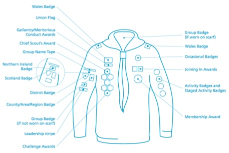 Beavers take part in many activities at colony meetings that work towards badges. Beavers can also earn badges in their own time. A list of all the current Beaver badges can be found here. There are also challenge award badges and details about these can be found here. When a Beaver is awarded a badge, it is needs sewing onto the uniform in the positions outlined below.